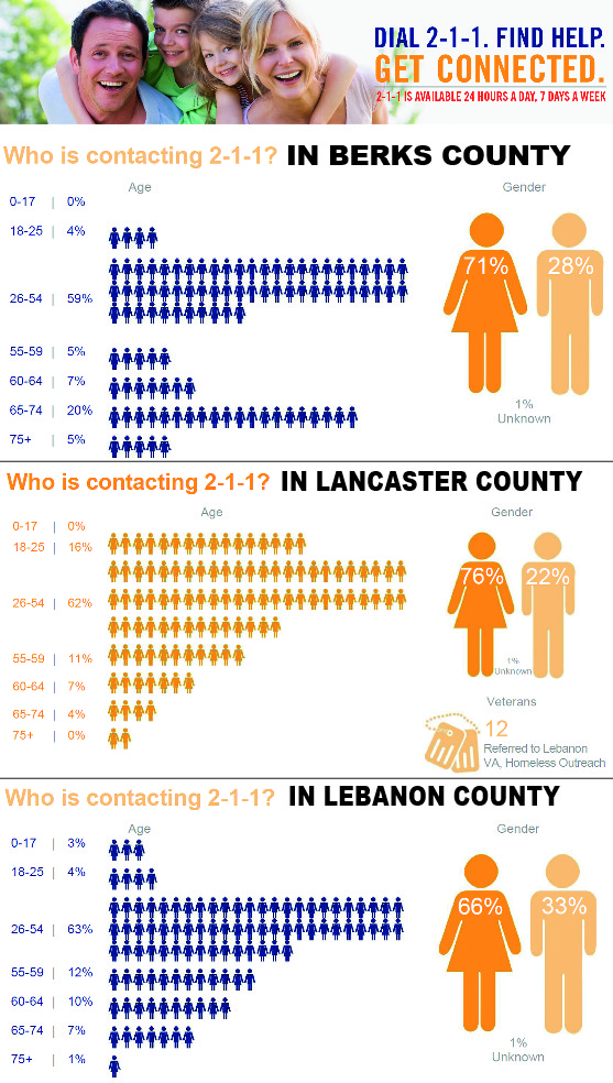 Pennsylvania 2-1-1 East is a free, confidential, non-emergency, comprehensive information and referral service that connects Berks, Carbon, Lancaster, Lebanon, Lehigh, Northampton, and Schuylkill county residents with the health and human services they need.
